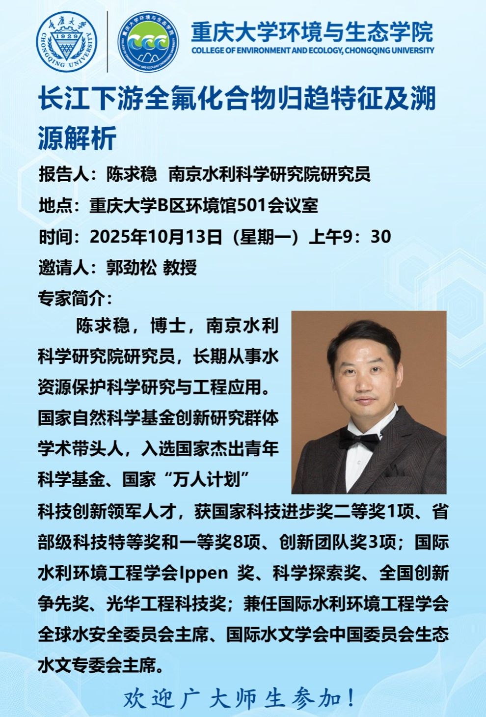 上一条:【学术报告】The dialectics of zero pollution plans and expanding chemical productivity 下一条:【学术报告】水利工程与河流生物地球化学循环
