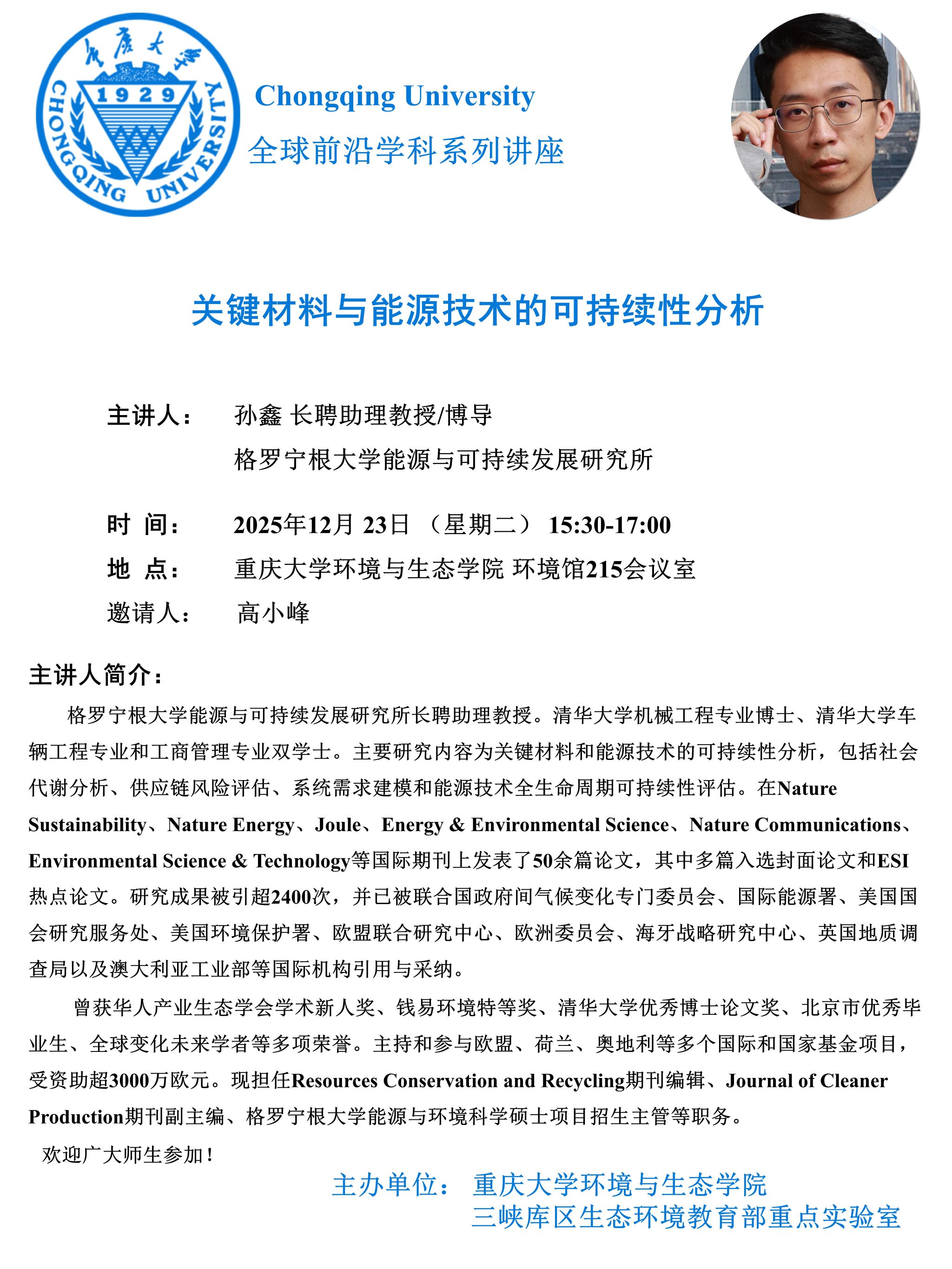 上一条:【学术报告】Sustainable Water Infrastructure and Integrated Water Management:Insights from REDAC’s Research and the BlOECODS Framework 下一条:【学术报告】资源碳中和概念由来与路径思考