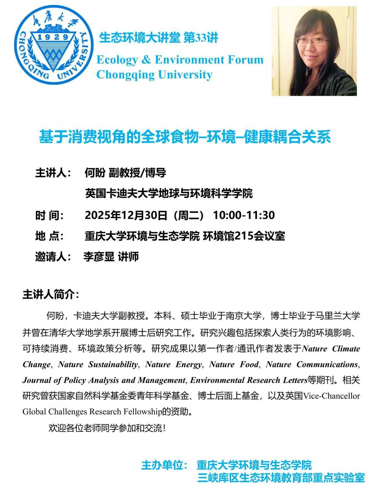 【学术报告】基于消费视角的全球食物-环境-健康耦合关系