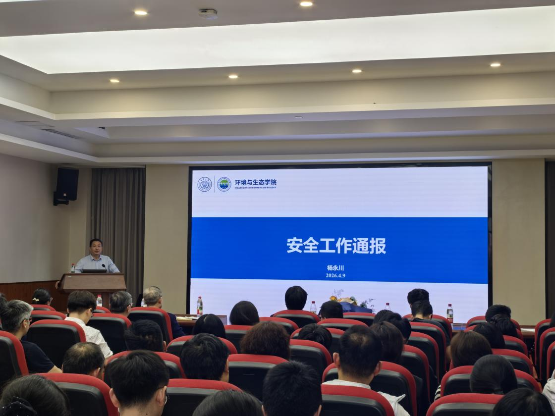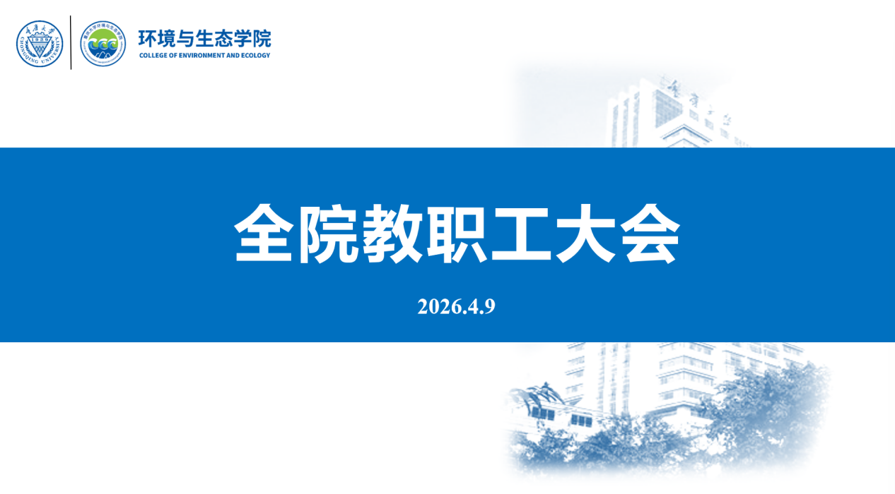 2026年4月9日下午,环境与生态学院在环境馆501会议室召开2026年春季学期全院教职工大会。学院原院长何强,党委书记蒲清平,党委副书记、纪委书记高微,副院长杨永川、陈一出席会议,会议由学院党委书记蒲清平主持。